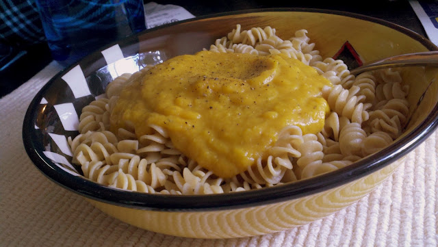 Well, this is one of those new things I've tried. I'd seen recipes for this popping up on FoodGawker every now and again, some comparing it to my beloved macaroni and cheese. I didn't believe that a pasta with Butternut Squash Sauce would be such an amazing comfort food, but it truly did parallel my favorite cheesy pasta dishes and definitely won a place in my go-to recipe box.